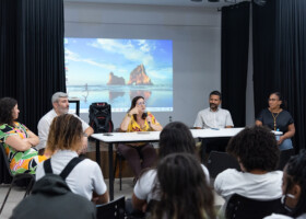 Roda de conversa “Políticas dos Terreiros: Pesquisa e Intervenção Social”, realizada pelo Ginga-UFF como parte do Pint of Science Brasil 2025.